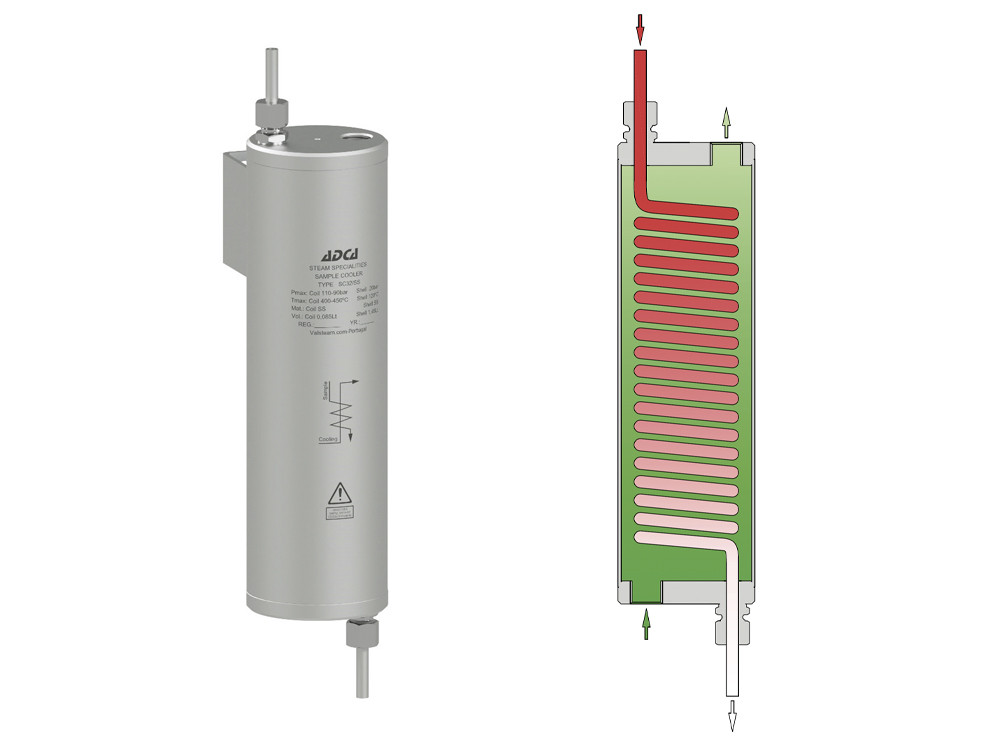 Flow rate capacity 30 to 60 kg/h of sample liquid at ≈30 ºC with 1 m³/h of inlet cooling water at 15 ºC.
