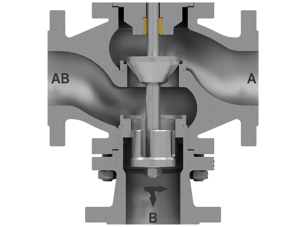 Three-way, desing with diverting plug