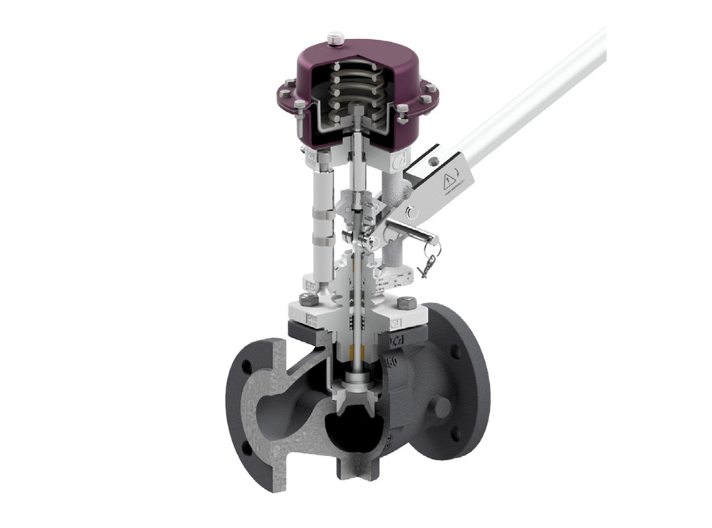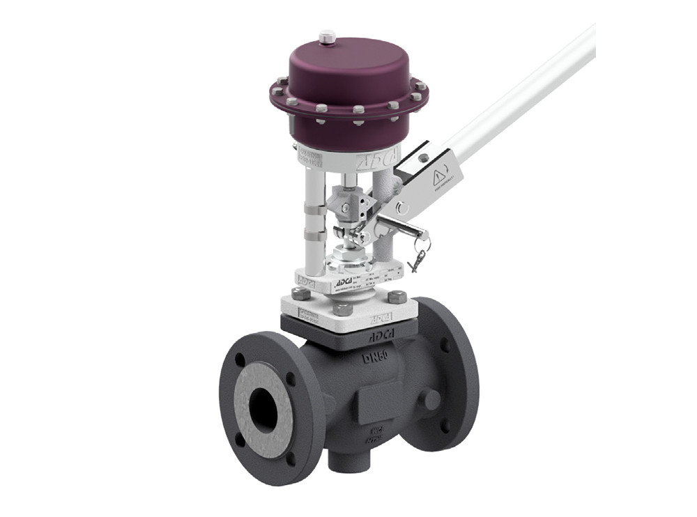 Intermittent bottom blowdown valve ADCA VPA26/2S DN 50 (Kvs 16), EN flanges, metal to metal plug, PTFE/GR stem sealing, complete with reverse action actuator signal 2 – 4 bar, mod. ADCATrol PA10 (ΔP 40 bar) steel, and hand lever
